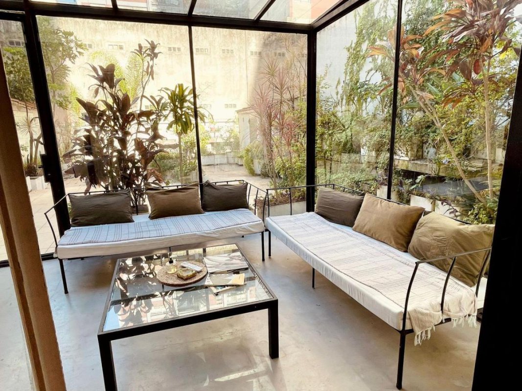 Luminoso y silencioso departamento totalmente amoblado, ubicado frente a Plaza Libertad, con patio cubierto, jardín y cochera. Un espacio único por su amplitud, tranquilidad y el entorno verde que ofrece su jardín privado.